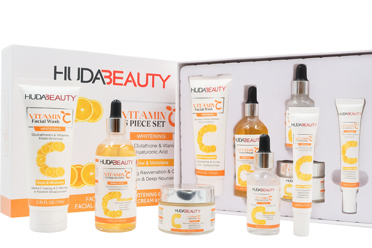 HUDA BEAUTY Vitamin C Whitening Skincare Set – 5 in 1 Complete Facial Care